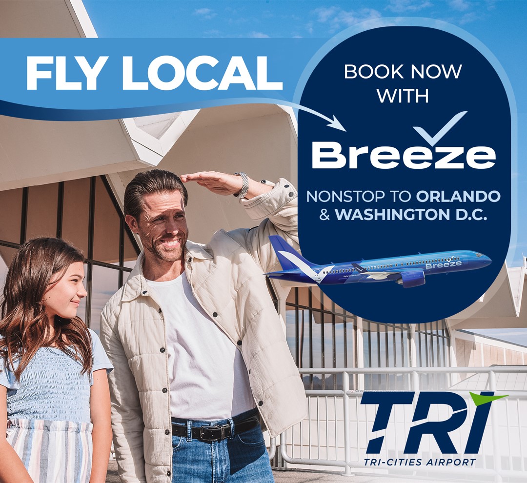 Tri-Cities Airport is excited to welcome Breeze Airways with service to Orlando, Florida and Washington D.C.